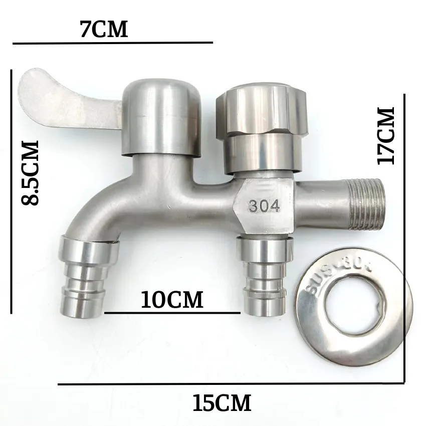Vòi nước 2 đầu ra inox, Vòi nước 2 đầu cho máy giặt chia nước thành 2 cổng xả độc lập, chất liệu Inox 304 cao cấp